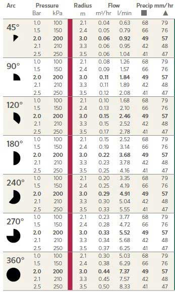 همچنین هر عدد مثلاً ۱۰ نشاندهنده شعاع حدودی پاشش آبپاش در مقیاس فوت میباشد.