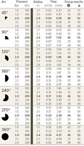 هر فوت حدود ۳۰ سانتیمتر است. یعنی آبپاش هانتر 8A در حدود 2.4 متر شعاع پاشش دارد.